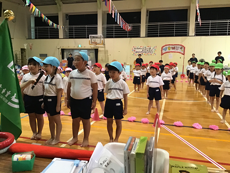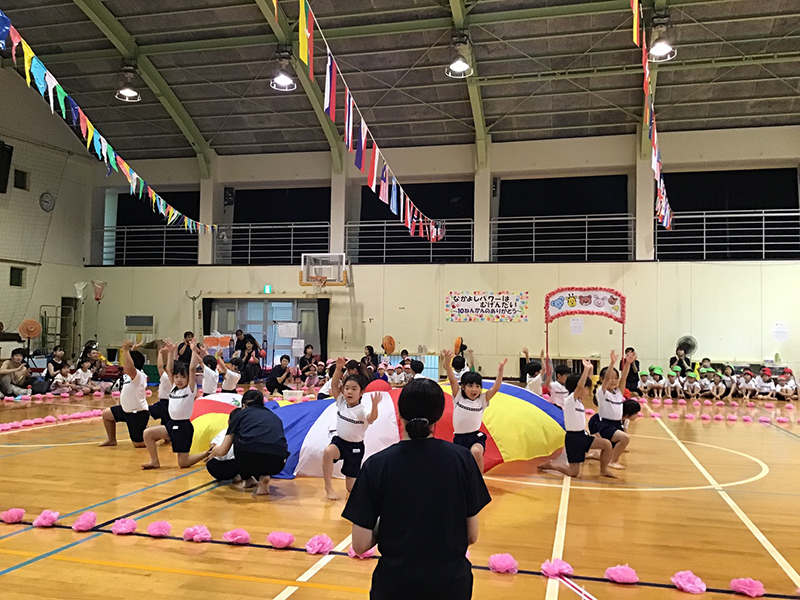 9月27日(土) 第10回 2歳児〜5歳児の運動会を西小倉小学校・体育館で行いました。今年のスローガン「なかよしパワーはむげんだい」〜10ねんかんのありがとう〜