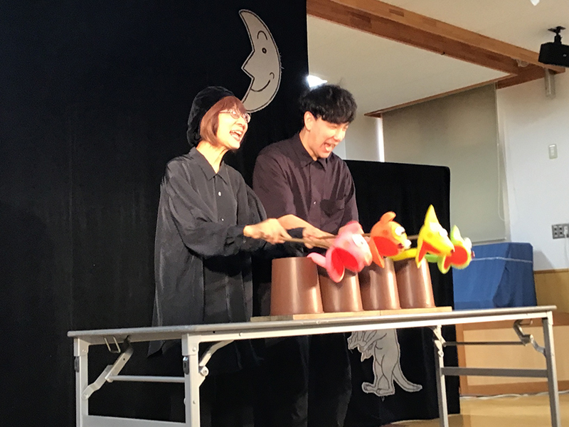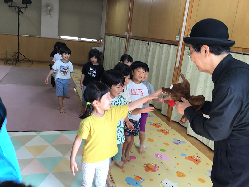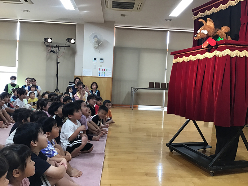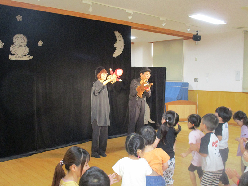 親子観劇 2025年10月15日 10月15日(水)ののはな劇団さんによる人形劇がありました。地域の親子の方も8組の参加があり、みんなで観劇しました。子どもたちも目をキラキラとさせながら人形の動きに見入っていました。会場は終始、笑い声と笑顔に包まれ、みんなで楽しい時間を過ごしました。