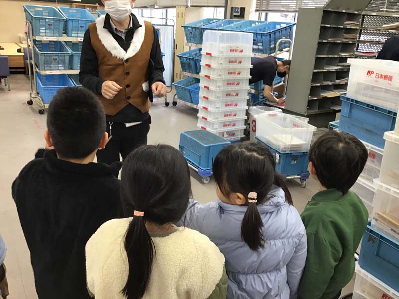 小倉西郵便局に見学に行きました。窓口や手紙を仕分けするところなど普段見られない所を見せて頂きました。