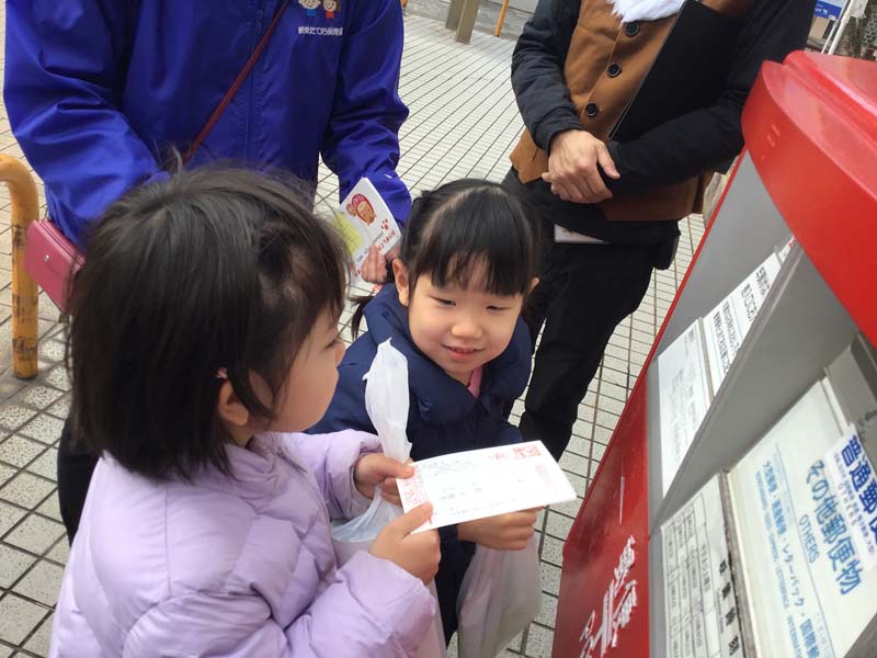 みんなで歌をうたい、ポストにハガキを投函…。「みんなに届きますように」と言いながらポストに入れていました。1月の“郵便ごっこ”が楽しみになりました。