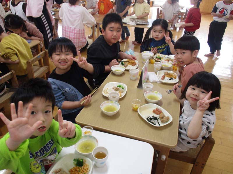 また、いつもおいしい給食を作ってくれる給食の先生に感謝状を送り、「ありがとうございます」とお礼の気持ちを伝えました。3・4・5歳児が同じテーブルで食べ、「おいしいね」「おかわりもしたいね」と会話も弾み、楽しい時間を過ごすことができました。