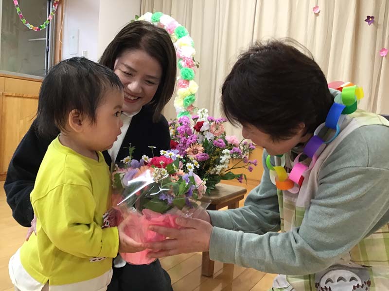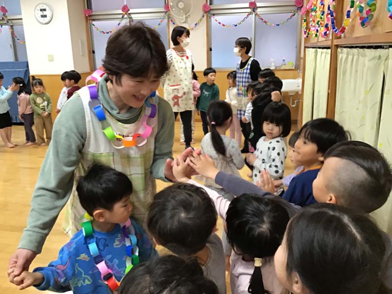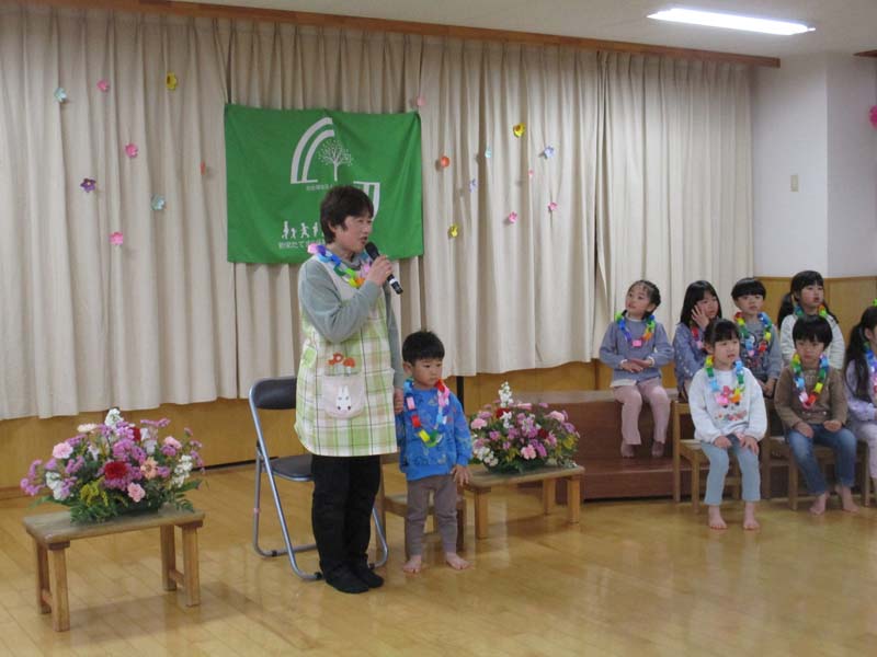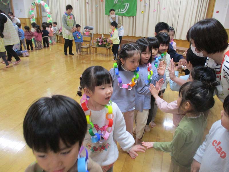 お別れ会 2026年3月31日 いよいよぞう組さんは今日が最後の登園の日となりました。お別れ会では小学校でがんばりたいことを一言ずつ発表している姿が立派でした。今日でお別れの先生や大好きなお友達に“ありがとう“の気持ちを込めて、「お思い出のアルバム」の歌を歌いました。卒園児・退園児の子どもたちや先生にハイタッチをして見送りました。新しい場所でも頑張ってくださいね。